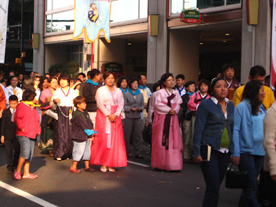 But back to the procession. Here are the girls who made their first Holy Communion this year: my friend's daughter was in the crowd, though I don't see her in the picture. They were very seriously strewing rose petals from their baskets, and I only regret that I didn't snap a picture of the boys, who were strewing theirs rather less seriously, like into each other's hair.